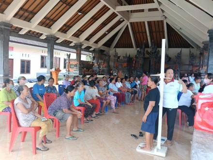 Seperti kegiatan ILP pada bulan-bulan sebelumnya yakni untuk Posyandu balita diadakan pemerintahan pengukuran tinggi badan, berat badan, lingkar kepala ,pemberian vitamin A pada anak- anak dan sosialisasi dari Puskesmas Seririt 1, untuk posyandu lansia yakni pemeriksaan berat badan pemeriksaan tensi cek gula darah dan juga kolesterol.